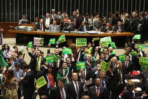O pedido de impedimento feito pelos golpistas Hélio Bicudo, Janaína Paschoal e Miguel Reale, foi recebido pelo deputado ponta de lança do golpe, e, agora afastado, Eduardo Cunha (PMDB). Em um processo que envolveu votações sigilosas ilegais, crimes não cometidos, acordos com o judiciário, “coxinhatos” chamados por empresas e escutas ilegais, a câmara dos deputados autorizou a abertura do processo de impedimento no Senado em uma sessão que mostrou os tacanhos deputados em uma votação que ficou lembrada pelas suas frases estúpidas e apologias à torturadores.