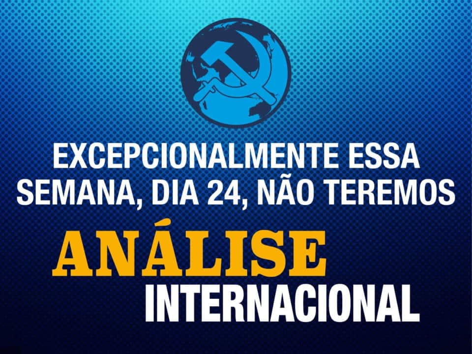 Da redação – O programa Análise Internacional, apresentado pelo companheiro Rui Costa Pimenta, Presidente Nacional do PCO, toda sexta-feira, às 14 horas da tarde, terá uma pausa nesta sexta-feira, 24, devido a atividades do partido e, assim, passamos para avisar todos nossos assíduos telespectadores.