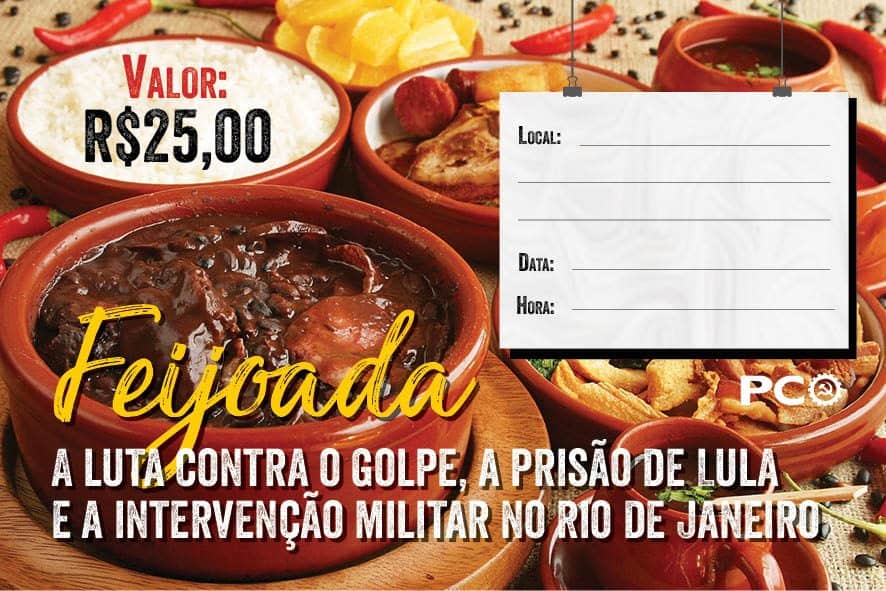 O evento será precedido por uma feijoada oferecida pelos militantes com o intuito de levantar recursos para fazer materiais da campanha pela liberdade de Lula, como cartazes, adesivos e panfletos. O convite está sendo vendido pelos militantes no valor de R$ 25,00.