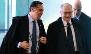 foram os ministros do Supremo Tribunal Federal (STF), Luiz Edson Fachin, relator da Operação Lava Jato (que tem entre seus alvos o presidente golpista Michel Temer e a cúpula do MDB) e Luis Roberto Barroso, que relata outros inquéritos que investigam Temer e que, no Tribunal Superior Eleitoral (TSE), é o relator do pedido de registro da candidatura de Lula.