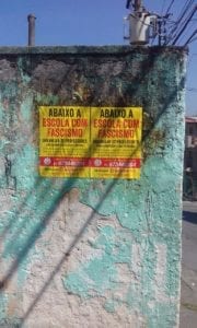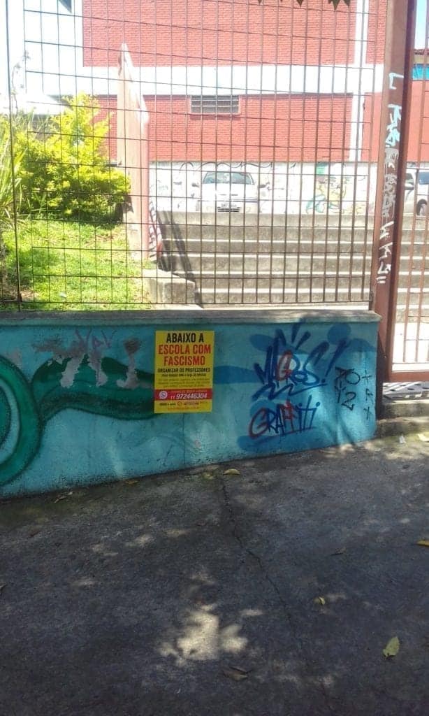 Nesta última sexta-feira (30), os militantes do Comitê de Luta Contra o Golpe de Embu das Artes realizaram uma atividade de colagem de cartaz “Abaixo A Escola com Fascismo”. Denunciando o avanço da extrema direita nas escolas e divulgando o contato de organização dos professores para acabar com a caça as bruxas no município e em todo o país.