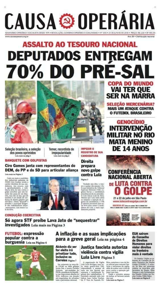 Em tempos em que a burguesia tenta apagar as linhas que separam a direita da esquerda, os golpistas dos lutadores contra o golpe; em tempos em que a burguesia tenta substituir o vermelho pelo verde e amarelo nas ruas e infiltrar verdadeiros inimigos do povo dentro do movimento popular, o Diário Causa Operária se coloca na linha de frente do enfrentamento contra tudo isso.