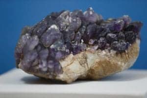 Amostra de cristal romboédrico de quartzo sobre massa de cristais de turmalina verde. Peça doada ao Museu Nacional pelo presidente Getúlio Vargas em 1940; ao lado, um cristal de quartzo pertencente à família Real.