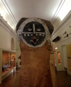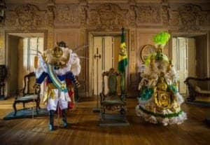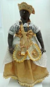 O trono do Rei de Daomé, uma das primeiras peças do museu, presente dado pelo rei africano para D. João VI; e Boneca de pano com traje de orixá, feita para Exposição de Etnologia Regional de 1949.