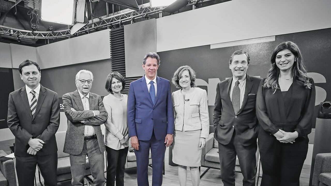 A bancada golpista da Globo tentou o tempo todo encurralar Fernando Haddad com a acusação caluniosa de que o PT é o partido mais corrupto do mundo e Lula é um criminoso perigoso, conforme o fraudulento processo criminal realizado pela operação Lava Jato.