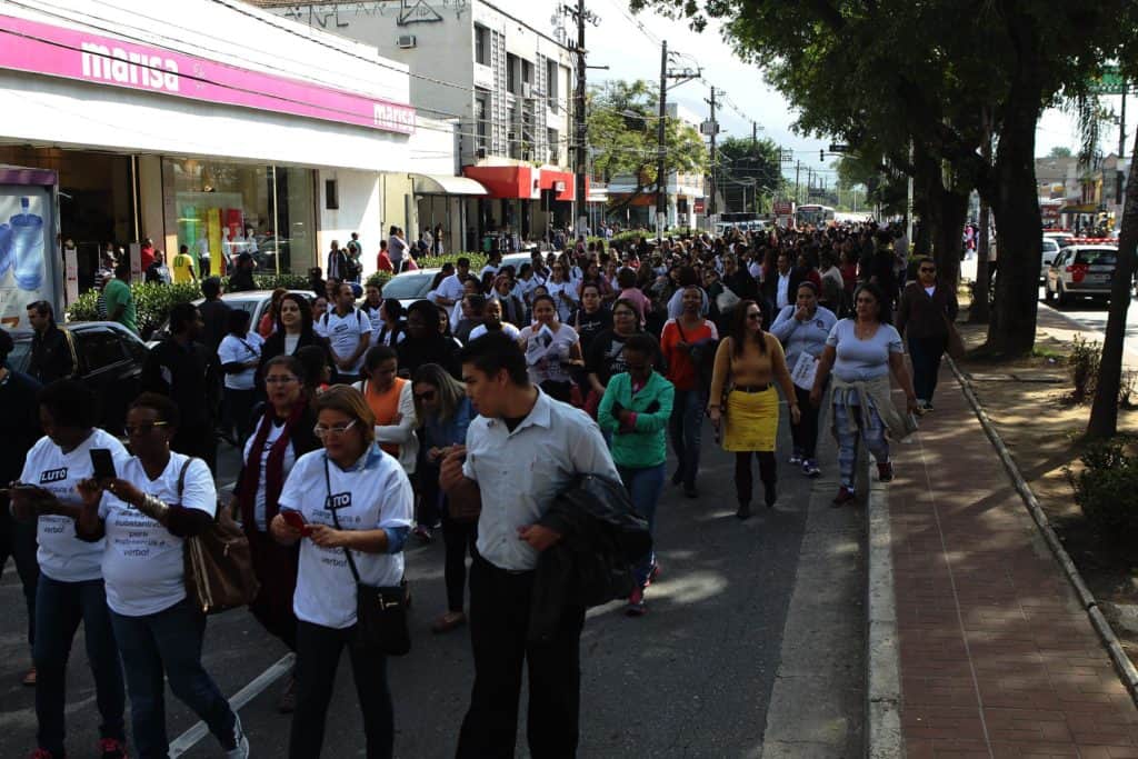 A categoria se reuniu em frente ao Paço Municipal, às 10h, para confecção de cartazes e outras atividades.Cerca de 300 professores estavam presentes. Por volta das 12h, os professores realizam passeata pela Avenida Nove de Abril. A greve é contra as medidas do governo, que editou dois decretos em dezembro.
