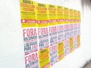 Na mesma região, foram colados os cartazes que alertam que a situação política atual é de continuação do Golpe de Estado, iniciado em 2016. Os golpistas dominando totalmente as instituições fizeram uma enorme pressão para que o principal candidato não participasse da eleição, Luiz Inácio Lula da Silva, aquele que sempre apresentou intenções de voto suficientes para ganhar no primeiro turno. Foram colados também cartazes reforçando o disque solidário aos professores que se sentirem ameaçados e censurados. Sendo (11) 972446304 o número nacional e (31) 98302-3778 o número do estado de Minas Gerais.