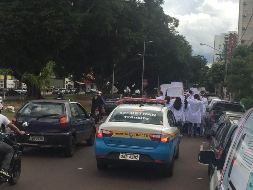 Da redação – Os estudantes de medicina da Universidade Estadual de Mato Grosso do Sul (UEMS) protestaram vestidos com jalecos brancos na tarde dessa terça-feira,12, na região central de Campo Grande (MS). Segurando cartazes de protesto, eles alegam que estão sem aulas há 45 dias e denunciam descaso do governo tucano do estado.