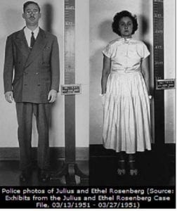 No dia 19 de junho de 1953, o casal Julius e Ethel Rosenberg foi executado na prisão de Sing Sing, em Nova York (EUA), após serem acusados de repassar aos soviéticos informações sobre a bomba atômica. O ”Casal Rosenberg”, como ficaram conhecidos na imprensa mundial na época, foi assassinado na cadeira elétrica, condenados por um júri popular que sentenciou-os por entregar segredos da bomba atômica ao vice-cônsul soviético em Nova York.