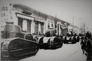 Tanques Renault FT-17, da Companhia de Carros de Assalto, empregados para destruir a bateria de canhões rebelde