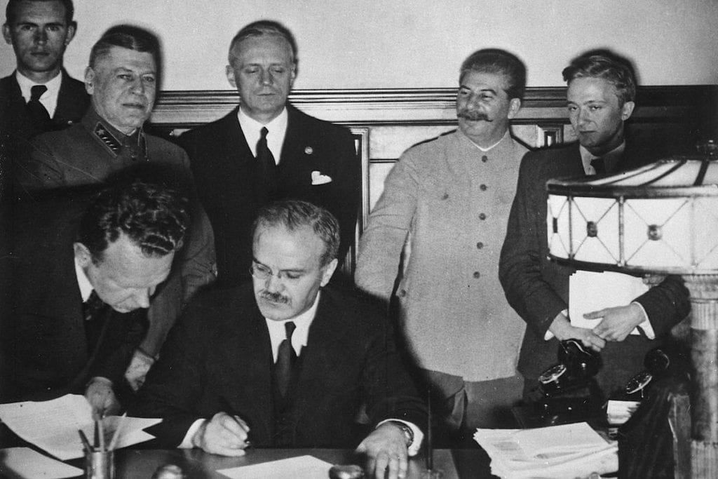 Em 23 de agosto de 1939, foi assinado, em Moscou, às vésperas da II Guerra Mundial, o pacto de não-agressão entre a Alemanha Nazista, de Hitler, e a União Soviética, governada por Stalin e que seria, pelo menos na teoria, válido por 10 anos. A decisão de assinar esse acordo com Hitler foi um claro exemplo da vacilação de Stalin perante os nazistas, além de um grande voto de ingenuidade, como se o insano Hitler fosse respeitar o acordo, que na verdade serviu apenas para pavimentar o caminho que Hitler pretendia seguir para dominar a União Soviética.