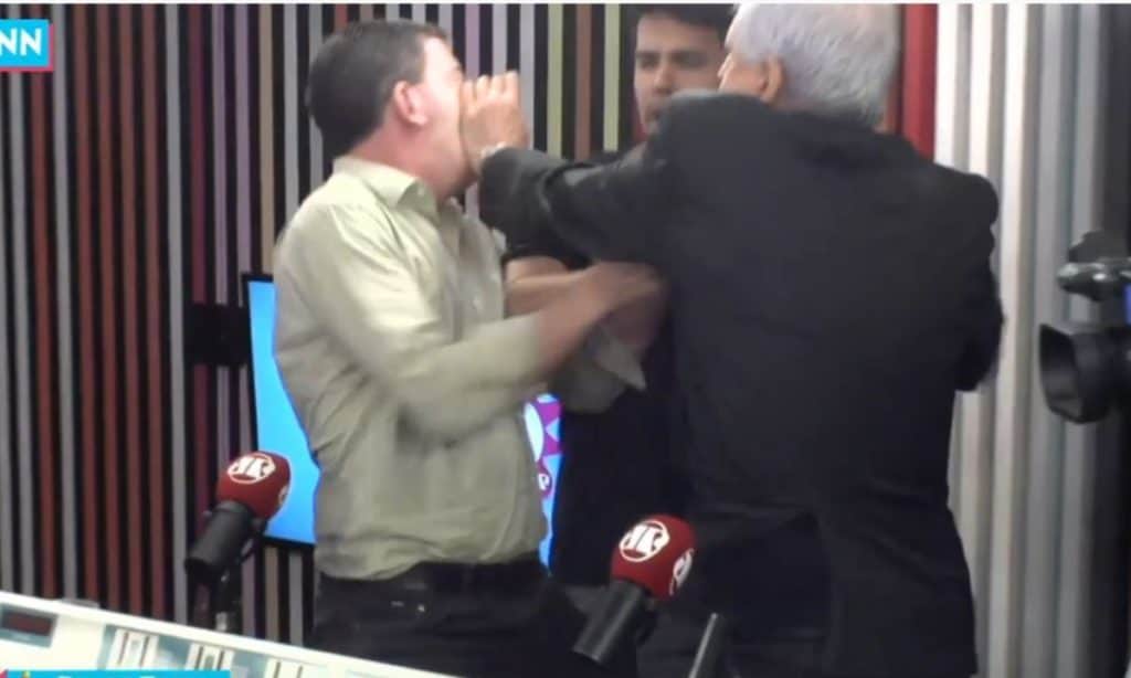 Nesse momento, o jornalista norte-americano chamou o propagandista de “covarde” inúmeras vezes e começou o bate-boca mais intenso, quando, Nunes tentou dar um tapa na cara de Greenwald, que conseguiu se defender. Funcionários da rádio tentaram separar a briga, mas logo em seguida Nunes conseguiu dar um soco na cara do editor do Intercept.
