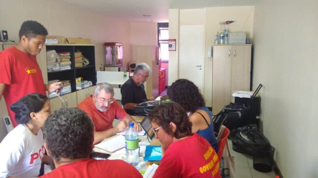 Foi um domingo de sucesso. Além das quase 200 assinaturas colhidas, tivemos distribuição de panfletos convocando para o ato de Curitiba e ainda a venda de matérias do Partido como a última edição do JCO, camisetas, bótons e canecas. Já em Águas Lindas e na sede do Partido o objetivo foi o de trabalhar exclusivamente com a organização da caravana. Na cidade do entorno foi feita uma reunião com um grupo de companheiros que têm interesse em realizar atividades de mutirão naquela localidade e também no ato em Curitiba. Na sede do PCO foi montado uma equipe de militantes que estão responsáveis para ligar para a lista de contato do Partido e dos comitês, convidando todos Para Curitiba e ainda para aqueles que não podem ir, pedindo contribuições para ajudar os militantes da juventude, desempregados e semicerra que não têm condição de arcar com os custos totais da atividade. Essa é uma prática regular que o PCO realizar e foi batizada carinhosamente pelos militantes de Karlmarx center. O resultado desse trabalho, que está sendo feito a cerca de 3 meses, será a caravana para o ato de Curitiba.
