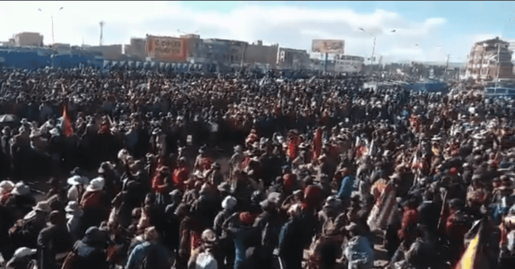 Vean la masiva concentración en El Alto para la movilización que ya se dirige a La Paz, al centro del poder político de #Bolivia. Hay dolor y rabia, una pelea de día y de noche contra el gobierno de facto que ya mató a 30 personas.#DictaduraEnBolivia#21Nov pic.twitter.com/1oIkbYEQof