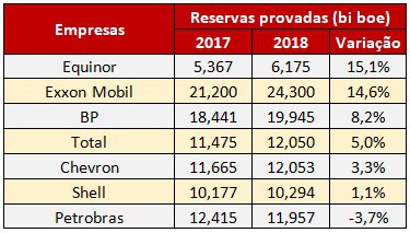 “Em um levantamento inédito realizado pelo Ineep monitorando sete das principais empresas de petróleo, nota-se que entre 2017 e 2018 gigantes do setor como Equinor, ExxonMobil e BP registraram uma expansão de suas reservas provadas de 15,1%, 14,6% e 8,2%, respectivamente. Em escala menor, Total, Chevron e Shell também apresentaram crescimento respectivo de 5,0%, 3,3% e 1,2%. No mesmo período, no entanto, somente a Petrobras retraiu o seu volume de reservas em 3,7%.”