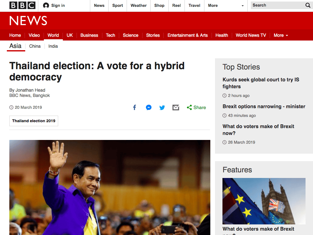 Embora o Pheu Thai ainda participe das eleições, seus candidatos estão proibidos de usar os nomes ou imagens dos irmãos Shinawatra. Além disso, a constituição da ditadura estabeleceu um teto de cargos para o Partido. Por outro lado, novos partidos e candidaturas de direita – encarregados de conferir um ar plural à ditadura –, como o ridículo bilionário Thanathorn Juangroongruangkit e seu Partido do Novo Futuro. É evidente, em todo caso, que todo o processo eleitoral é completamente fraudulento, destinado a dar a vitória ao general Prayuth Chan-ocha – o golpista à frente do Partido do Estado Popular.