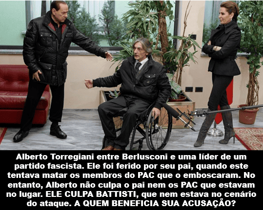 Por que nunca Battisti foi acusado pelos outros membros do PAC, salvo Pietro Mutti e Sante Fatone? Os outros são os irmãos Marco e Sebastiano Massala, Giuseppe Memeo, Luigi Lavazza, Enrica Migliorati, Gabriele Grimaldi, Diego Giacomini, e outros que estão exilados. Por que alguns, que foram abertamente torturados na presença do famigerado procurador Armando Spataro (como o enfermeiro Sisinnio Bitti), tampouco o mencionaram, mesmo que fosse para fugir do tormento?