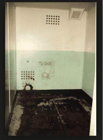 Neste buraco nojento a pessoa fica a vida toda. Ela não recebe visitas, nem cartas, nem ligações telefónicas, não pode ler nem escrever, não têm luz natural nem meios de comunicação. A comida chegará a ele por uma mão sem rosto. Se for detectado que ele está doente, poderá ser atendido por um médico apenas para que seu sofrimento possa continuar mais algum tempo. Como se vê na foto, a cela é suja. Loucura, doenças, infeções, atrofias sensoriais, paralisias, destruição orgânica por falta de sol, são coisas frequentes. Quem sobrevive mais de um ano, vira uma espécie de cadáver semi-vivente. Contudo, ele é alimentado para que a tortura seja prolongada.