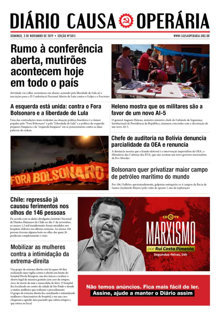 Em tempos em que a burguesia tenta apagar as linhas que separam a direita da esquerda, os golpistas dos lutadores contra o golpe; em tempos em que a burguesia tenta substituir o vermelho pelo verde e amarelo nas ruas e infiltrar verdadeiros inimigos do povo dentro do movimento popular, o Diário Causa Operária se coloca na linha de frente do enfrentamento contra tudo isso.