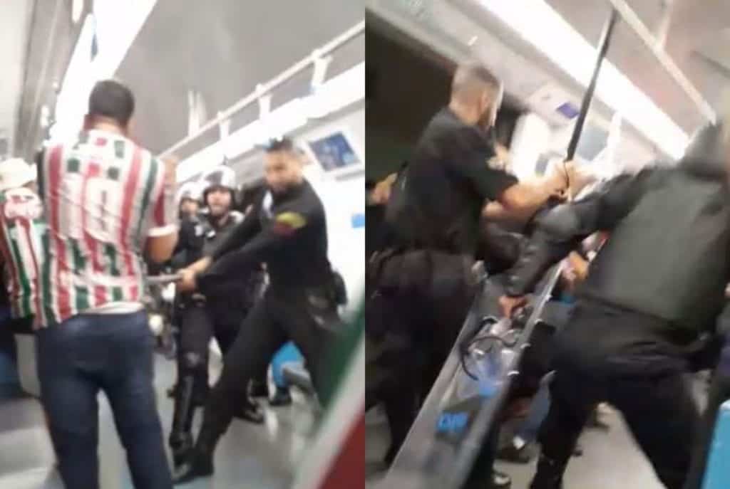 Torcedores do Fluminense voltando para casa depois do jogo de seu time contra o Corinthians, no estádio do Maracanã, na noite da última quinta-feira, receberam uma surra de seguranças do Metrô do Rio de Janeiro, dentro de uma vagão parado na estação que tem o nome do estádio, na Linha 2.