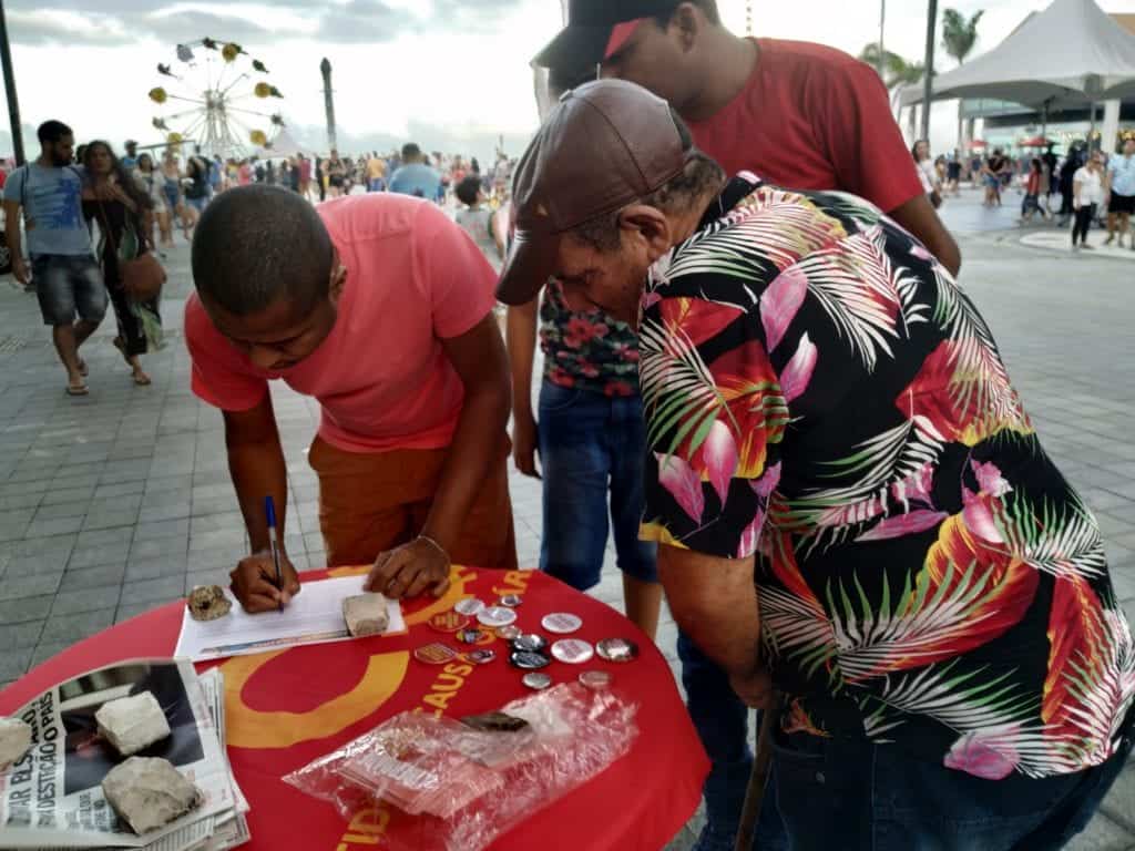 Os mutirões de Olinda e do Cabo de Santo Agostinho começaram logo de manhã. A partir das 8h, militantes da luta contra o golpe estavam na Feira de Peixinhos e no Mercado do Cabo coletando assinaturas pela anulação de todos os processos contra o ex-presidente Lula.