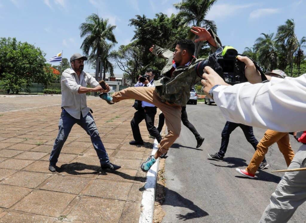 Não há qualquer dúvida que os bandos fascistas que invadiram a embaixada foram mobilizados pela extrema direita venezuelana, que agiram com o claro intuito de atacar e desmoralizar os representantes oficiais do governo de Nicolás Maduro no Brasil, preparando a tomada da embaixada para instalar uma representação impostora e golpista. O próprio organizador da operação criminosa, o engenheiro venezuelano Alberto Palombo, se declarou um emissário do autoproclamado “presidente” golpista Juan Guaidó, que há alguns meses atrás indicou como embaixadora clandestina a senhora Maria Teresa Belandría, recebida no Palácio do Planalto com todas as formalidades protocolares pelo presidente golpista brasileiro Jair Bolsonaro, para quem entregou as credenciais de “embaixadora” (golpista).