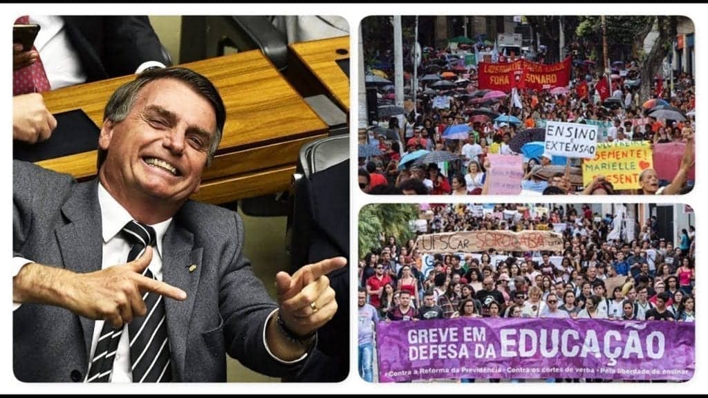 Após desmerecer as manifestações acusando-as de terem sido feitas por militantes e por estudantes “massa de manobra”, Bolsonaro passou a justificar os cortes na Educação dizendo que “são contingenciamentos”. Em seguida usou o discurso clássico da direita de que é obrigado a cortar devido a LRF (Lei de Responsabilidade Fiscal) e responsabilizou os governos do PT pela situação da Educação.