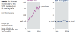 O Relatório da Desigualdade Global mostra como a participação econômica da classe média e da população mais pobre vem decaindo cada vez mais, para ceder lugar ao forte crescimento dos mais altos setores da burguesia.