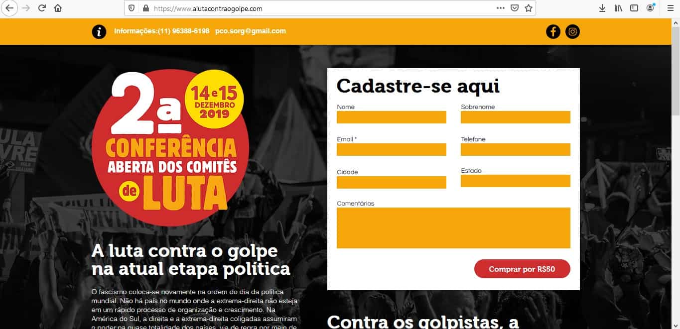 A menos de 10 dias para a II Conferência Nacional Aberta, que ocorrerá nos dias 14 e 15 de dezembro em São Paulo, para organizar os próximos passos na luta contra o golpe no Brasil e na América latina, já está disponível o site onde é possível fazer a inscrição e obter maiores informações do evento. Basta acessar: https://www.alutacontraogolpe.com/