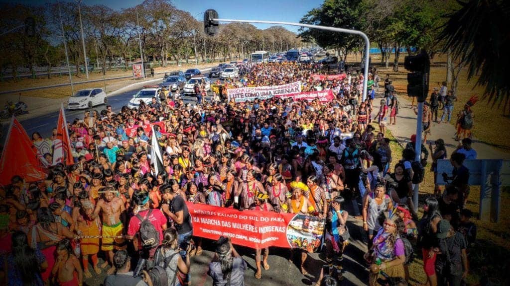 A marcha foi organizada pela Articulação Brasileira dos Povos Indígenas (Apib), com o objetivo de discutir o que é ser mulher nas comunidades indígenas.