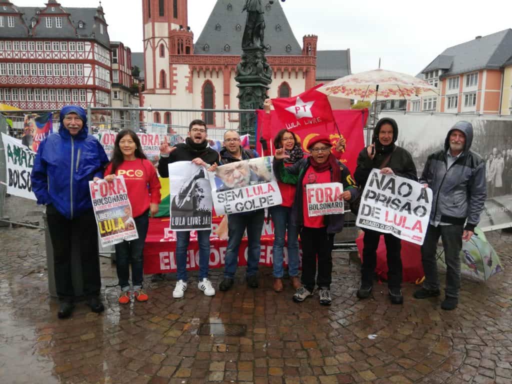 Em Frankfurt, na Alemanha, militantes do PCO organizaram um protesto hoje para denunciar a prisão política de Lula, expandindo internacionalmente a campanha pela liberdade de Lula. A campanha pela liberdade de Lula é crucial nesse momento para impor uma derrota à direita golpista e obrigar os golpistas a recuarem. A campanha internacional ajuda a denunciar a perseguição política que está em andamento no País, pressionando o regime político que se organizou para manter Lula preso a qualquer custo, atropelando seus direitos democráticos.