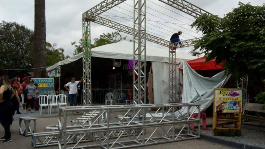 Da redação – Os militantes que se encontram neste momento na Vigília Lula Livre, em frente à Superintendência da Polícia Federal, em Curitiba, estão montando um palco para que o ex-presidente Lula possa discursar, caso saia da carceragem, como está previsto.