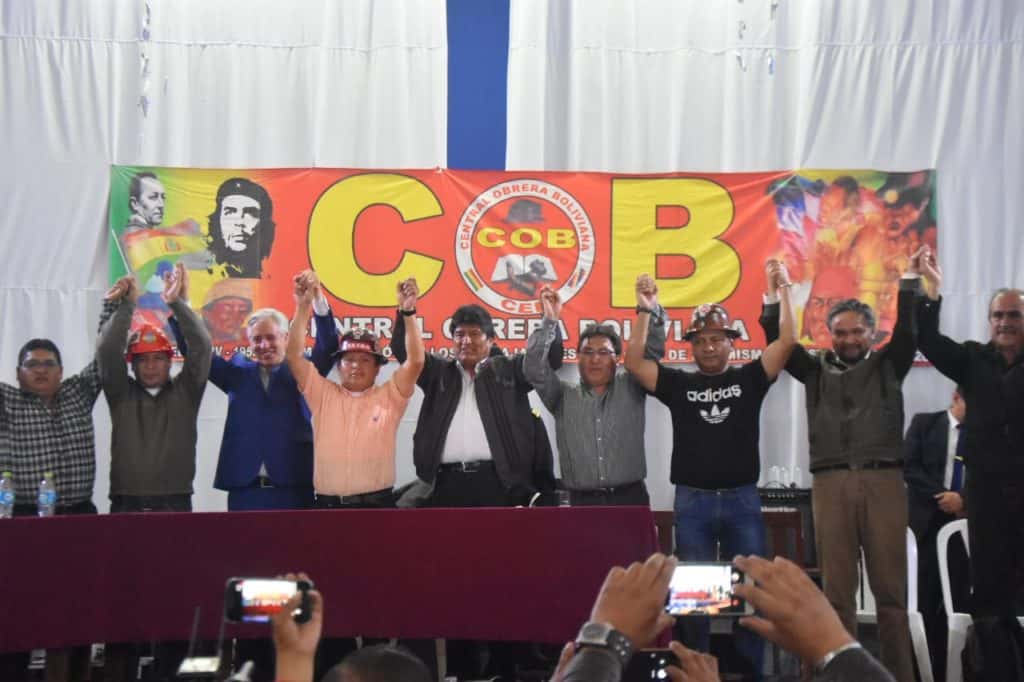 Na oportunidade o secretário-geral da COB, Juan Carlos Huarachi, assinalou em entrevista coletiva que “o povo está pedindo. Por isso pedimos ao presidente reflita. Se é para o bem do País, se e pela saúde do País, renuncie nosso presidente”. Na entrevista a direção da COB apoiou a proposta de convocação de novas eleições apoiadas pela direita e repetiu o bordão tradicional de setores da esquerda que capitulam diante da direita: “não seremos cúmplices do derramamento de sangue”.