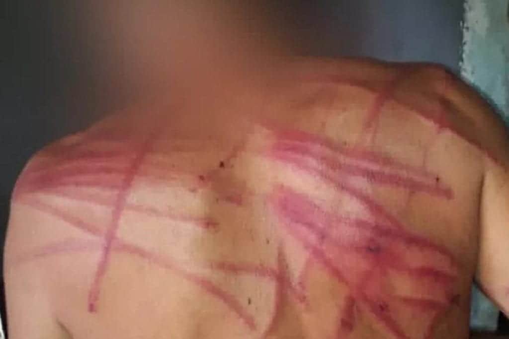 “Eles pegaram meu irmão e começaram a chicotear ele. Botaram sentado no quarto e começaram a chicotear ele”, contou o irmão da vítima, ao ressaltar que a casa da família foi completamente revirada. Por medo de represálias, a família abandonou a casa onde morava. A foto acima mostra as costas do jovem, repleta de marcas.