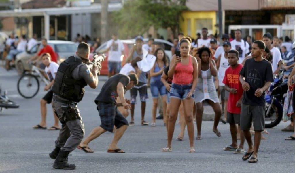 Nas redes sociais se observam comentários sobre o policial estar “desequilibrado”, mas este argumento sobre “despreparo policial” é falacioso. O caso abaixo não se trata de uma exceção, mas de regra. Outros policiais podem agir com mais calma ou discretamente, mas seu fim é exatamente o mesmo: intimidar a expressão popular, impedir que o povo se organize politicamente, reprimir e matar.