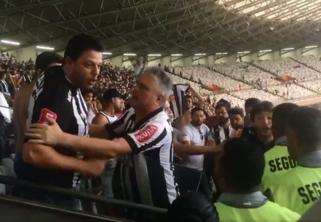 Durante uma partida do Atlético Mineiro, diante de uma confusão que teria começado no meio da torcida, a Polícia Militar jogou gás de pimenta nos torcedores, que, encurralados, buscaram refúgio em outro setor da arquibancada, na área da imprensa.