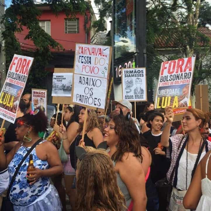 Não apenas denunciando a prisão ilegal de Lula, nesse carnaval os trabalhadores denunciaram também o golpe, que vem massacrando os direitos do povo. A população pediu também a saída do presidente golpista, Jair Bolsonaro, do poder, deixando ainda mais evidente a fraude que foi o processo eleitoral no ano passado (2018).
