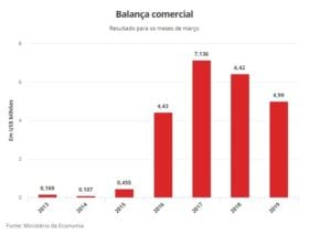 Depois do “pibinho” de 2018, cujos dados oficiais apontaram um minúsculo crescimento 1,1%, repetindo o mesmo índice de 2017, que não recuperam nem a metade do declínio de 2016 (-3,6%) e de outros dados negativos da economia nacional, o Ministério da Economia divulgou ontem (dia 1º) que a balança comercial registrou, em março, um superávit de US$ 4,99 bilhões.
