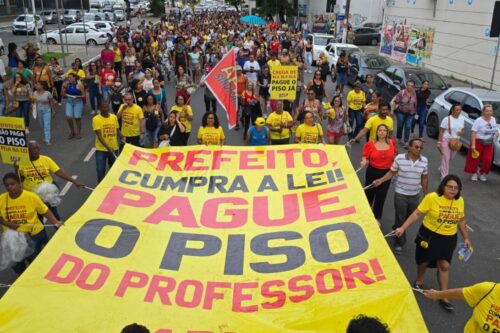 Fim do roubo dos salários: reposição integral das perdas salariais; Piso Salarial Nacional de R$ 6 mil para todos os professores (Meta 17 do PNE). Abaixo a Escola com Fascismo e a Militarização das Escolas.