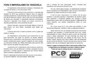 Nessa última sexta-feira, dia 8 de fevereiro, diversas cidades tiveram atos a favor do governo Maduro, contra a intervenção golpista do imperialismo norte-americano na Venezuela.