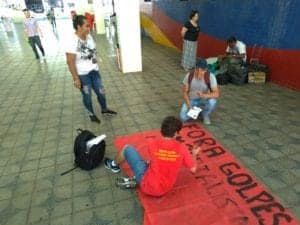Em Alfenas-MG, o ato aconteceu no fim da tarde, na rodoviária da Praça Dr Emílio da Silveira, centro do município. Com faixa e entregue cerca de mil panfletos.