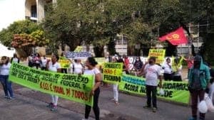 formalmente, extinguiu a escravidão negra no País, cerca de uma centena de manifestantes apoiados pelo PCO e por dirigentes do Sindicato dos Bancários do DF, Comitês de Luta locais etc. saíra às ruas, na Esplanada dos Ministérios, para protestar contra a “pena de morte” que ameaça milhares de “escravos”. do século XXI, sob a pandemia de Covid-19.