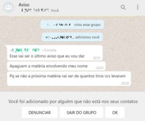 “Esse vai ser o último aviso que eu vou dar. Apaguem a matéria envolvendo meu nome. Porque se não a próxima matéria vai ser de quantos tiros vocês levaram”.
