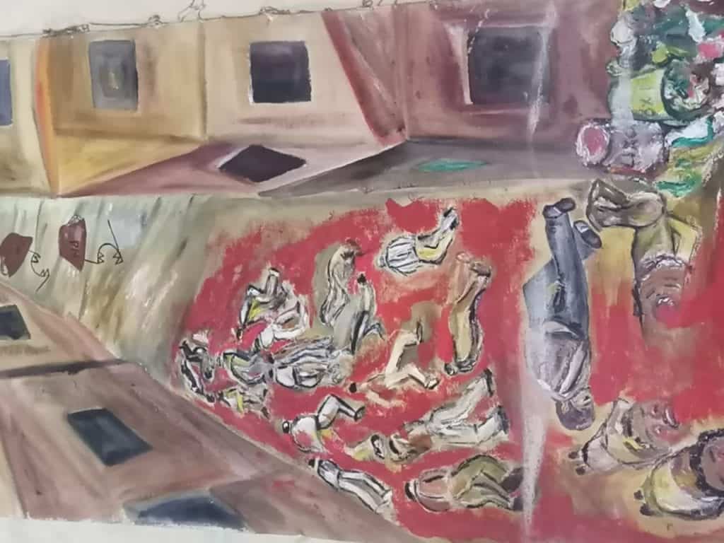 representa episódio do Massacre de Paraisópolis. É uma importante iniciativa de uma arte engajada politicamente, que procura mostrar o horror produzido pelo governo João Dória (PSDB) e a Polícia Militar de São Paulo. O quadro destaca-se pela criatividade e excelência na técnica artística.