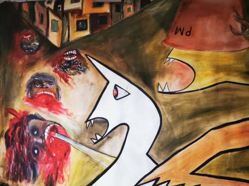representa episódio do Massacre de Paraisópolis. É uma importante iniciativa de uma arte engajada politicamente, que procura mostrar o horror produzido pelo governo João Dória (PSDB) e a Polícia Militar de São Paulo. O quadro destaca-se pela criatividade e excelência na técnica artística.