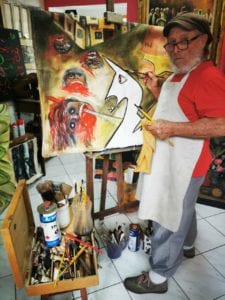 O artista Bruno Gaigher, militante do Partido da Causa Operária de Embu das Artes, pintou um quadro que