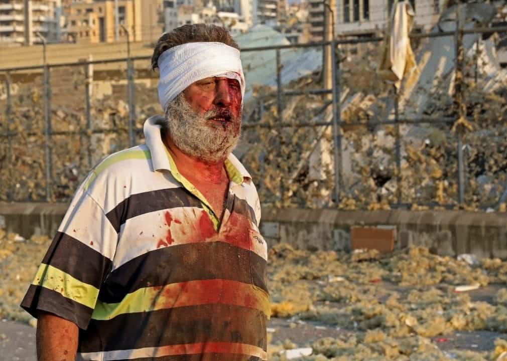 - Homem ferido após as explosões na capital libanesa