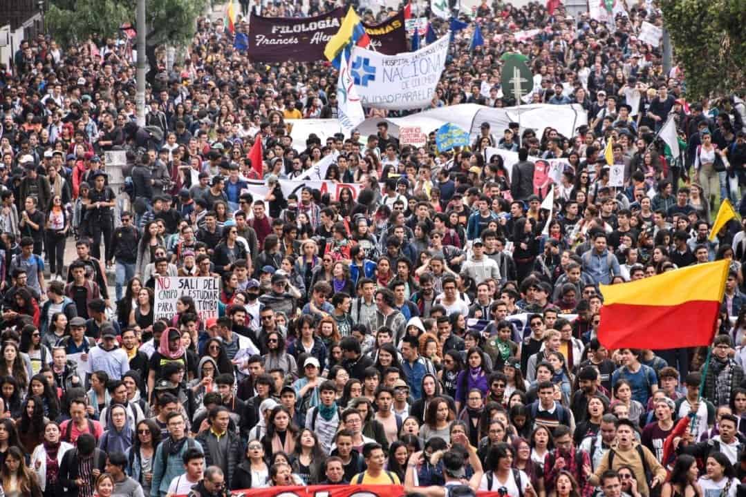 Centrais sindicais, estudantes, comunidades locais, camponeses, ativistas, lideranças políticas e movimentos de mulheres, se mobilizam junto com centenas de pessoas em Bogotá, Medellín, Barranquilla e Cali, entre outras cidades, contra a violência sistemática da Polícia Nacional contra o povo colombiano e exigem do Governo do Presidente Iván Duque, o cumprimento dos Acordos de Paz assinados em 2016 entre o Estado e a Forças Armadas Revolucionárias da Colômbia – Exército Popular (FARC-EP), além de denunciar o desmantelamento do Decreto 1174, por meio do qual é criado o chamado Piso de Proteção Social e a precarização das relações de trabalho.