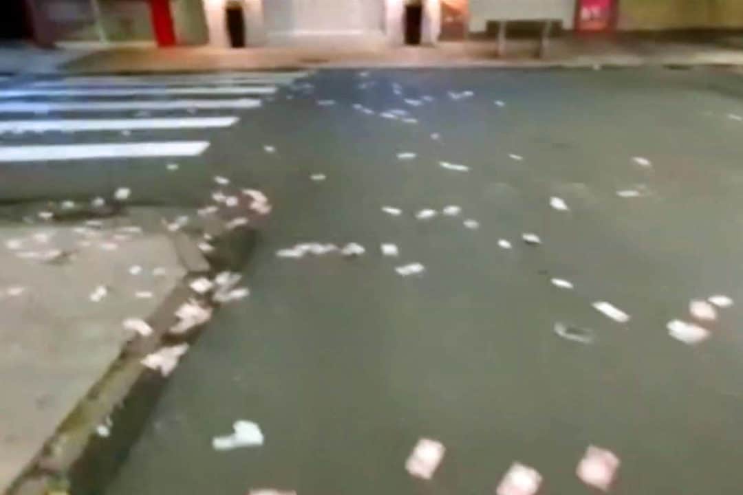 Posteriormente, a população que passava pela rua e viu o dinheiro começou a recolhe-lo.