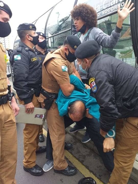 Durante o ato, o advogado popular, militante e colunista do Brasil de Fato Paraná, Renato Almeida de Freitas foi agredido, bem como o coordenador da Pastoral Carcerária. Chaves de braço, empurrões, intimidação e escoriações foram causadas pela PM nos manifestantes.